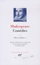 La troisième période, celle des comédies "romanesques" (Le Conte d'hiver, Cymbeline, La Tempête...), se caractérisera par la complexité des intrigues, la multiplicité des personnages et l'opacité du "mystère" central qui les occupe ; leur esthétique de l'émerveillement coïncide avec la création des théâtres à machines. De La Comédie des erreurs et du Dressage de la rebelle (La Mégère apprivoisée), imitées de Plaute et teintées de commedia dell'arte, au Marchand de Venise, qui mêle une comédie urbaine et cruelle à une intrigue galante et sentimentale, en passant par les désopilantes métamorphoses ovidiennes et la poésie féerique du Songe d'une nuit d'été ou par les jeux de langage en cascade - traits d'esprit affutés ou impropriétés cocasses - qui font toute la matière de Peines d'amour perdues, les pièces réunies dans ce premier volume reflètent la multiplicité des facettes d'une écriture toujours pleine d'insolence et d'alacrité.