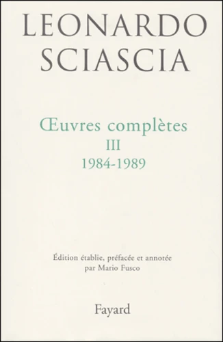 TROISIEME ET DERNIER VOLUME (1984-1989) DES OEUVRES COMPLETES, MISES A JOUR, HOMOGENEISEES ET ANNOTEES PAR MARIO FUSCO, DU GRAND CONTEUR HUMANISTE QU'ETAIT L'ECRIVAIN SICILIEN LEONARDO SCIASCIA.