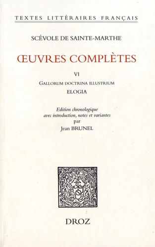 La nouveauté de l’édition consiste d’abord en ce qu’elle reproduit les éloges selon la chronologie de leur publication. D’autre part la traduction, imprimée pour la première fois à côté du texte latin, remplace la vieille version de Colletet qui n’est pas toujours sûre. L’édition des Oeuvres complètes de Scévole de Sainte-Marthe est établie par Jean Brunel, ancien Professeur à la Faculté des Lettres de Poitiers, avec la collaboration de Pierre Martin, Professeur dans la même Université.