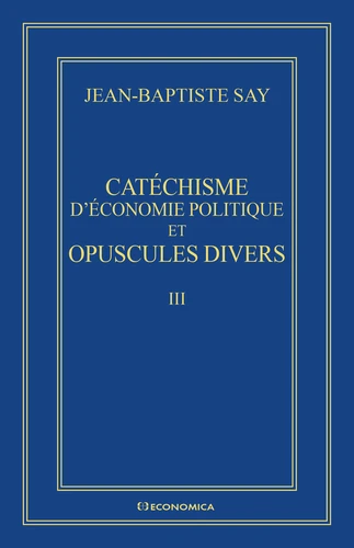 Le volume comprend quatre séries de textes. Tout d'abord la version variorum du Catéchisme, ouvrage destiné par J. -B. Say à un public très large avec une forte intention pédagogique. Ensuite, les Lettres à Malthus qui traite du débat sur la loi de Say. Puis un dossier complet sur les écrits de Say (correspondance et textes publiés) à propos des Canaux de navigation. Enfn le dernier texte est celui de la brochure publiée par Say De l'Angleterre et des Anglais avec un important document inédit : le journal de voyage en Angleterre avec les éléments de correspondance qui lui sont associés.