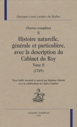 Oeuvres complètes. Tome 2, Histoire naturelle, générale et particulière, avec la description du Cabinet du Roy (1749)