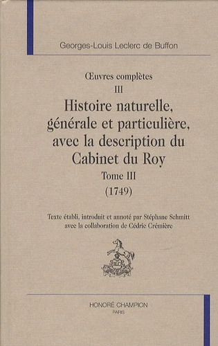 Oeuvres complètes. Tome 3, Histoire naturelle, générale et particulière, avec la description du Cabinet du Roy (1749)