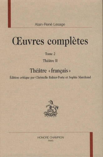 Le volume consacré au théâtre "français" de Lesage réunit dans l'ordre chronologique de leur représentation à la Comédie-Française : Crispin rival de son maître (1707), Turcaret et la Critique de la comédie de Turcaret par le Diable boiteux (1709) et La Tontine (1732). On trouvera en annexe une édition d'Arlequin Colonel, adaptation de La Tontine pour le théâtre de la Foire de la veuve Baron (1714).