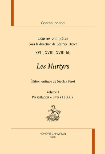 Ce deuxième volume comprend les variantes, les manuscrits et les épreuves des Martyrs de Dioclétien qui permettent de reconstituer les différents états du texte de Chateaubriand. Il comprend également toute l'annotation rédigée pour cette édition par Nicolas Perot. Le premier volume comportant sur une même page le texte des Martyrs et le texte des Remarques rédigées par Chateaubriand, on pourra garder ouvert ce deuxième volume pour y lire en parallèle toutes les notes afférentes sans avoir besoin de passer d'une page à l'autre d'un même volume.