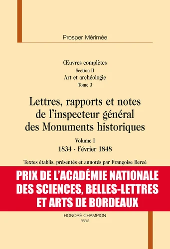 Oeuvres complètes. Section II Tome 3, Lettres, rapports et notes de l'inspecteur général des monuments historiques. Pack en 2 volumes : Volume I, 1834 - Février 1848 ; Volume II, Février 1848 - 1870