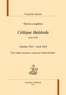 Si, en fait, la vie théâtrale n'est guère bouleversée, cette loi ravive chez Gautier l'espoir de répertoires renouvelés et élargis. Il faut se résigner, en attendant, à la disette de nouveautés et guetter tout ce qui mérite attention même sur les scènes modestes ou chez les amateurs. Comme pour les seize volumes publiés depuis 2007, le texte a été établi avec soin et annoté en vue de souligner la richesse de ce regard exceptionnel sur l'histoire du théâtre vivant au XIXe siècle.