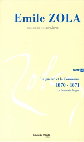 Après une introduction générale, chaque couvre fait l'objet d'une notice. Dans chaque volume, on trouve d'abord les couvres narratives (romans, contes et nouvelles), puis le théâtre, les chroniques, les couvres critiques et la correspondance. Avec La Fortune des Rougon, qui ouvre ce volume, débute l'aventure des Rougon-Macquart. Elle durera vingt-cinq ans. Pour l'heure, cependant, le romancier se heurte aux traverses de l'histoire.