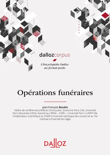 Une analyse juridique complète des opérations funéraires L'ouvrage consacré aux opérations funéraires analyse tous les aspects de la législation et de la réglementation funéraire à la fois sous l'angle juridique (cimetières et autres lieux de sépultures ; modes de sépultures et concessions ; gestion des funérailles ; police des funérailles) que fiscal. Une sélection de l'Encyclopédie Dalloz à partir d'une ou plusieurs rubriques extraites de ce fond doctrinal.