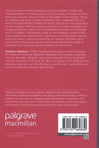 This book explores the everyday practices of border control and implementation of mobility policy in the European Schengen area by analyzing consular visas services on the edges of the territory. Using an original case study, private contractors that implement EU visa policy on governments' behalf, the author focuses on visa application centers located in Morocco and run by the two major contractors of European Member States, the transnational corporations VFSGlobal and TLSContact.