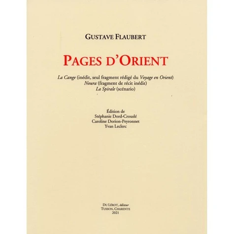 Une seule fois pendant le périple, il rédige un récit suivi, qu'il intitule La Cange, d'après le nom des bateaux qui naviguent sur le Nil. C'est ce manuscrit inédit qui fait l'objet de la présente publication. Au-delà du récit de ce voyage, décisif dans la formation de l'écrivain, le désir d'Orient imprègne une grande partie de son oeuvre, comme en témoignent deux autres textes proposés ici : Mura, un fragment de récit épique inédit rédigé vers 1845, et La Spirale, scénario d'un roman, entre réalisme et fantastique, auquel Flaubert songe pendant qu'il écrit Madame Bovary.