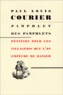 Paul Louis Courier (1772-1825) reste un écrivain à part. Officier d'artillerie sous la Révolution puis sous l'Empire, il préférait aux canons l'étude du grec et la lecture. Son esprit d'insubordination le poussèrent finalement à s'installer comme vigneron dans sa Touraine natale où il borna son ambition à traduire les auteurs grecs et à écrire des pamphlets qui sont des petits chef-d'œuvres d'éloquence et de pureté de langage. Son pamphlet des pamphlets (1824) est une apologie du genre. Son fiel satirique et une verve de raillerie méprisante et cruelle, très appréciés de Mérimée et de Stendhal, le firent comparer de son vivant à voltaire et à l auteur des provinciales. Cet ironiste incarna l'indépendance de la pensée contre l'arbitraire politique et religieux de la restauration.