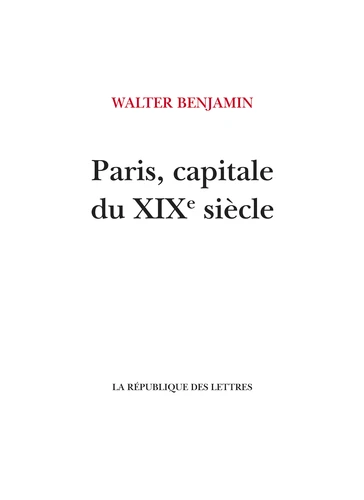 Le résidu caractéristique de cette conception est ce qu'on a appelé "l'Histoire de la Civilisation". (...) Notre enquête se propose de montrer comment par suite de cette représentation chosiste de la civilisation, les formes de vie nouvelle et les nouvelles créations à base économique et technique que nous devons au XIXe siècle entrent dans l'univers d'une fantasmagorie. (...) Ainsi se présentent les "passages", première mise en oeuvre de la construction en fer ; ainsi se présentent les expositions universelles ; dans le même ordre de phénomènes, l'expérience du flâneur, qui s'abandonne aux fantasmagories du marché.