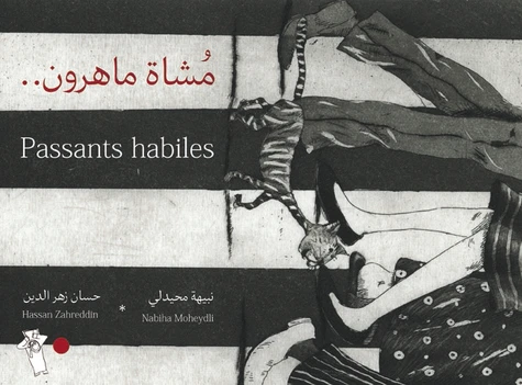 Passants habiles est une histoire courte de quotidien : jour après jour, les passants habiles s'appliquent et traversent les routes. Rassemblés un court instant dans l'attente d'un feu, ils guettent et finalement s'élancent. Chacun suit son chemin, qui sait d'où chacun vient, qui sait où chacun va ? De sa fenêtre, une enfant les observe et se questionne sur nos chemins de vie. En fin d'album, la fillette est devenue dame et se questionne toujours, en se voyant, enfant, regarder les passants.