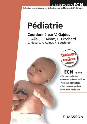 Cet ouvrage de cours synthétique traite l'ensemble des items de pédiatrie du programme de DCEM2-DCEM4. Chaque chapitre, consacré à un item, est rédigé suivant un plan identique, original, clair et très didactique qui facilite l'apprentissage. Chaque item comprend les éléments systématiques suivants : les conférences de consensus, d'experts et les recommandations existantes ; des schémas, des algorithmes et de l'iconographie ; des encadrés sur les notions importantes ; des repères permettant d'identifier les sujets déjà tombés au concours de l'internat et aux ECN (entre 1995 et 2009), clairement indiqués en regard du thème tombé avec leur date et un court résumé des Annales ; des renvois transversaux vers les autres items du programme (intra- et interdisciplinaires) ; les " zéros " aux questions ; une " Fiche Dernier tour " qui propose un résumé de l'item pour une révision complète et rapide de celui-ci. Le public : Les étudiants de DCEM2-DCEM4 qui souhaitent se préparer efficacement aux Épreuves Classantes Nationales.