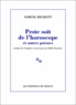 Inédits en français, ces poèmes ont été écrits entre 1930 et 1976. Au cours d'un demi-siècle, le style de Samuel Beckett évolue considérablement dans sa poésie comme dans toutes les autres formes de son oeuvre. Le jeune poète des années trente - qui fréquente les dadaïstes et les surréalistes, même s'il n'adhère pas à leur doctrine -, adopte un style baroque, excentrique, où s'expriment sa culture et son exubérance.