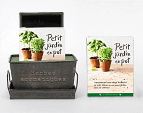 Un mini kit des balcons avec un joli container tendance et un ravissant livre de 192 pages donnant plein d’idées de plantations !