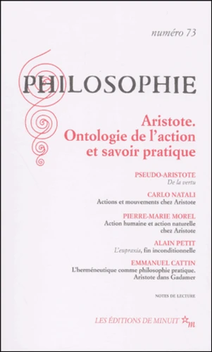 La philosophie morale et politique d'Aristote est avant tout une philosophie de l'action. La vertu, l'intention morale, les normes sociales sont sans valeur si l'activité humaine ne les rend pas effectives. Aristote ne veut pas se satisfaire, pour autant, d'un pur pragmatisme qui nous ferait prendre le possible pour le bien. Vous devons encore savoir par rapport à quel type d'activité ou de mouvement se définit l'action ; si l'action est proprement humaine ou si nous pouvons parler d'actions pour les autres vivants ; si l'action est une singularité et une fin en elle-même ou si elle ne prend sens que par son insertion dans une pluralité d'activités, celles de l'individu et celles de la communauté. Nous devons enfin nous demander si l'action résulte d'un simple calcul, d'une estimation statistique de nos chances de réussite, ou bien si elle suppose un authentique savoir pratique. Ces exigences, qui peuvent être aussi les nôtres, nourrissent la conception aristotélicienne de l'action. Il était donc naturel que la réception contemporaine de la philosophie pratique d'Aristote en exploite les multiples ressources. Les études réunies dans ce volume prennent en compte ce renouvellement récent, mais elles entendent surtout revenir aux préoccupations proprement aristotéliciennes : élaborer une ontologie de l'action et fonder le savoir pratique.