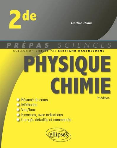Cet ouvrage est destiné aux élèves de Seconde et qui souhaitent acquérir un très bon niveau dans l'optique d'aborder dans les meilleures conditions la Première et, bien sûr, de réussir le Bac, pourquoi pas avec mention. Il est aussi un outil indispensable pour ceux qui souhaitent poursuivre des études supérieures dans une formation laissant une part importante aux sciences physiques. Tout en suivant strictement le programme conforme à la réforme du Bac, cet ouvrage l'appréhende différemment, en particulier, il aide à comprendre les méthodes de raisonnement et de résolution qui sont la clé de la réussite dans les études supérieures scientifiques. Dans chaque chapitre, vous trouverez : le résumé de cours, il vous permettra d'accéder à une connaissance synthétique des notions ; les méthodes, elles vous initieront aux techniques usuelles qu'il faut savoir mettre en place ; le vrai/faux, il testera votre compréhension du cours et vous évitera de tomber dans les erreurs classiques ; les exercices, avec indications, ils vous entraîneront tout au long de l'année pour aborder les devoirs en classe avec profit ; les corrigés détaillés et commentés, toujours rédigés avec soin, ils vous aideront à progresser dans la résolution des exercices. Ainsi ce livre complétera celui utilisé en cours. Il permettra d'aborder avec aisance les interrogations, les devoirs surveillés et offrira les meilleures conditions pour réussir plus tard son baccalauréat et son entrée dans les études supérieures.