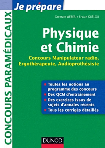 Vous êtes candidat aux concours Manipulateur en électroradiologie médicale, Ergothérapeute ou Audioprothésiste ? Cet ouvrage vous propose : un cours complet en physique adapté au programme des concours. Un cours complet supplémentaire en chimie pour le concours Manipulateur en électroradiologie médicale. Des QCM d’entraînement pour vérifier vos connaissances et la compréhension du cours. Des sujets extraits d’annales de concours récents.