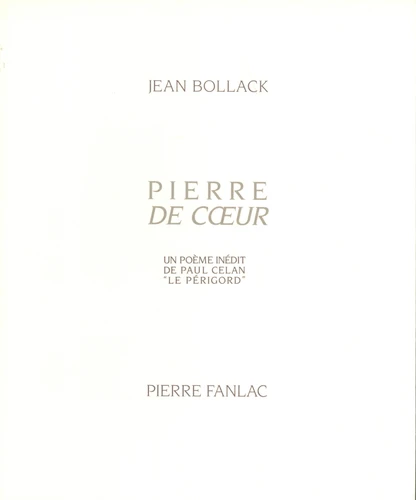 Pierre de coeur. Un poème inédit de Paul Celan, "le Périgord"