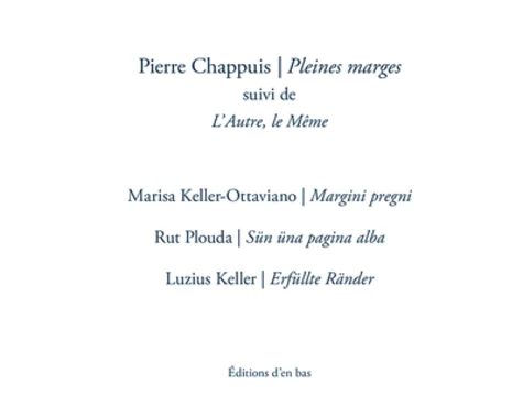 Publication quadrilingue. Le recueil Pleines marges, dont Pierre Chappuis est l'auteur, est exemplaire d'une poésie qui surgit à l'instant. En cela, il répond aux notions développées par Gaston Bachelard quant à l'instantanéité et à la discontinuité, comprises dans une structure qui, paradoxalement, les exprime.