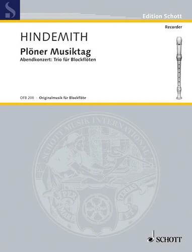 'We have to make music here the whole day long ! ' Such was the enthusiastic response of Paul Hindemith when he heard the school orchestra of Plön. 'We start with an aubade blown from the tower, then we play a cantata in the park, table music at lunchtime and in the evening a serenade in the Knights' Hall. ' No. 5 of this evening music from the 'Plöner Musiktag' is the 'Trio für Blockflöten'. An edition was published as early as 1932 by Walter Bergmann who adapted the original phrasing and articulation to the customs of recorder playing at that time.