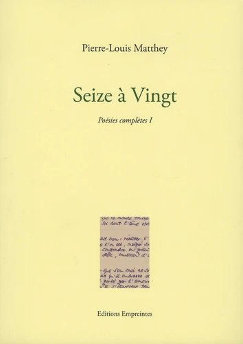 A vingt ans, au retour d'un long séjour, loin des siens, en Ecosse et à Londres, Pierre-Louis Matthey risque tout : son premier recueil livre l'extraordinaire portrait intérieur d'un adolescent tourmenté, plein de feu et de désarroi, révolté par le conformisme et la morale puritaine, nourri de lectures exigeantes. Oeuvre d'une grande hardiesse formelle, Seize à Vingt paraît dans les Cahiers vaudois en 1914.