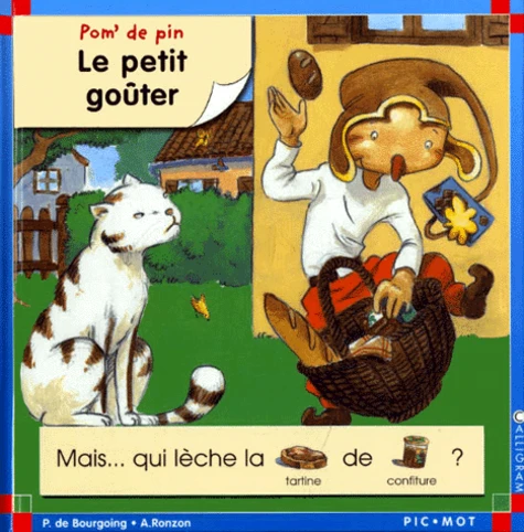 Papa ne veut surtout pas que Cacou emmène Pom'de pin goûter dehors car il va falloir encore le mettre dans la machine à laver et Papa sait que Cacou déteste ça.