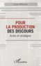 Pour la production des discours est un ouvrage théorique répondant à l'ouvrage déjà paru Connaître et pratiquer les actes et stratégies de discours. Cet ouvrage permet de recevoir une information plus conséquente sur ces actes et stratégies de discours, deux concepts à la base de son organisation dont les ancrages sont l'analyse du discours et une sémiotique subjective. A l'origine de cet ouvrage, il y a la pensée que produire des discours est affaire de signification.