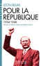 "Quand la République est menacée, le mot de républicain change de sens. Il reprend sa vieille signification, historique et héroïque. Les républicains ne sont plus ceux qui acceptent les institutions et s'en accommodent tant qu'elles durent. Ce sont ceux qui considèrent les libertés républicaines [... ] comme une condition vitale, et qui sont résolus à tous les sacrifices pour les préserver". Du Front populaire aux débuts de la IVe République en passant par la dénonciation du régime de Vichy, Léon Blum a mené un combat sans relâche pour la défense de la République, indissociable de ses convictions socialistes.