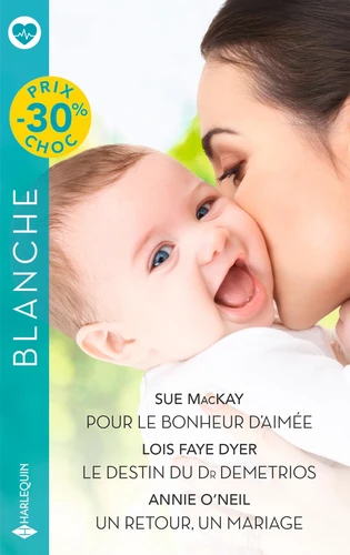 Pour le bonheur d'Aimée - Le destin du Dr Demetrios - Un retour, un mariage Prix Choc Pour le bonheur d'Aimée, Sue MacKay Elene a fait un long voyage pour retrouver le Dr Mattia Ricco. Mais sa détermination flanche quand elle fait face au bel Italien. Si son charme opère toujours sur elle, Elene n'est pas là pour se souvenir du baiser qu'ils ont échangé autrefois. Non, elle doit lui présenter le bébé qu'elle tient tendrement dans ses bras. Une jolie petite fille prénommée Aimée... Le destin du Dr Demetrios, Lois Faye Dyer Yannis Demetrios ne se reconnaît plus. Lui qui, hier encore, collectionnait les conquêtes, est tombé amoureux ! Pris à son propre piège, il n'a désormais plus qu'une idée en tête : retenir Jennifer et lui proposer de devenir sa femme... Mais - ironie du sort ! - la jeune femme, effrayée par sa réputation de don Juan, le fuit depuis la nuit qu'ils ont passée ensemble... Un retour, un mariage, Annie O'Neil Jayne a travaillé dur pour devenir la meilleure cardiologue pour enfants et depuis des années qu'elle exerce à Londres, elle ne vit que pour ses patients. Aussi est-elle réticente à prendre des congés dans sa ville natale. Surtout qu'un retour à Whitticombe serait trop riche en émotions. En effet, c'est là que vit encore l'homme qu'elle devait épouser...