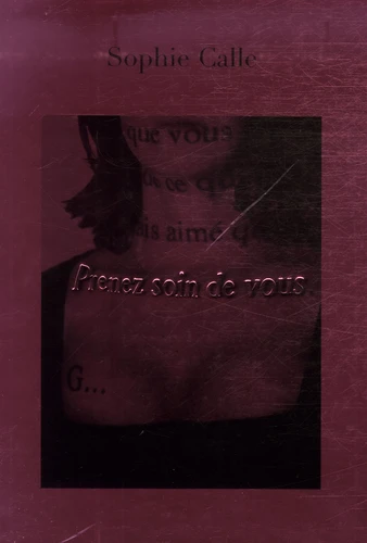 La disséquer. L'épuiser. Comprendre pour moi. Parler à ma place. Une façon de prendre le temps de rompre. A mon rythme. Prendre soin de moi". Parmi les métiers exercés par les cent sept femmes choisies par Sophie Calle : une médiatrice familiale, une chercheuse en lexicométrie, une correctrice, une dessinatrice, une journaliste d'agence de presse, une juge, une normalienne, une sexologue, une psychanalyste, une publicitaire, une avocate, une commissaire de police, une assistante sociale pénitentiaire, une journaliste, une criminologue, une exégète talmudique, une ado, une chasseur de tête, une physicienne, une spécialiste de littérature française contemporaine, une philosophe, une philosophe morale, une anthropologue, une experte des droits des femmes à l'ONU, une graphiste, une chef d'édition, une écrivain pour la jeunesse, une institutrice, une élève, une romancière, une compositrice, une voyante, une officier DGSE, une psychiatre, une traductrice en langage SMS, une cruciverbiste, une sociologue, une joueuse d'échec, une comptable, une mère, une animatrice radio, des actrices, scénaristes, réalisatrices, chanteuses, musiciennes...