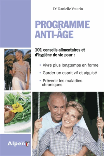 PROGRAMME ANTI-AGE Dr Danielle Vautrin ISBN13 : 978-2-35934-009-9 Résumé : Un guide pratique pour tous ceux qui veulent rester jeunes L'espérance de vie a fait un bond spectaculaire en deux siècles grâce à l'amélioration des conditions de vie puis de la médecine. Aujourd'hui en France, chaque femme peut espérer atteindre l'âge de 84 ans (77 ans pour les hommes). Si tout dans notre quotidien va dans le sens d'un allongement de la durée de vie, comment profiter au mieux de ces années gagnées ?? Comment vieillir en bonne santé et en pleine possession de ses moyens ? La meilleure façon, c'est d'agir au quotidien sur les facteurs dont on sait qu'ils interviennent dans le vieillissement.