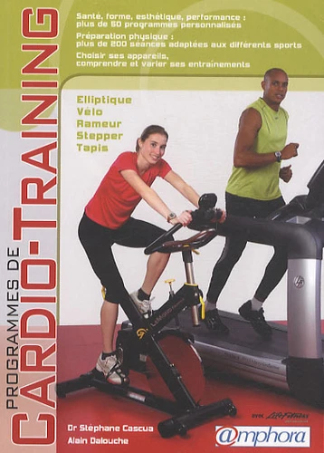 Vous envisagez de faire du cardio-training en salle, du vélo d'appartement ou du rameur à la maison, mais vous hésitez ! Que faire avec ces appareils ? Vous craignez de vous ennuyer et d'abandonner rapidement. Vous pratiquez régulièrement le cardio-training, mais vous avez l'impression que tous vos entraînements se ressemblent. Quand les appareils disposent de séances préprogrammées, vous ignorez leur utilité et vous ne savez pas comment les associer pour constituer un entraînement cohérent. Parfois vous ne parvenez même pas à dompter l'électronique superflue de ces matériels. La monotonie finit par vous lasser. Peut-être pensez-vous à déclarer forfait ! Alors découvrez toute la variété et l'efficacité des séances proposées dans Programmes de cardio-training. Avant de vous inscrire en salle ou d'acheter un appareil... ou avant de renoncer, laissez-vous inspirer par Programmes de : cardio-training. Variez les plaisirs et les bienfaits ! Bonifiez votre santé ! Renouez avec la performance ! Choisissez votre objectif du moment : forme, santé, minceur ou silhouette musclée. Diversifiez vos motivations, en salle ou à la maison préparez intelligemment votre match de foot du week-end, votre marathon ou votre séjour de ski ! Alternez des séances d'intensités différentes, bien ciblées et complémentaires, continues ou fractionnées. Affûtez votre forme ! Reproduisez les contraintes musculaires et énergétiques des autres sports que vous aimez. Et arrivez fin prêt sur le terrain ! Choisissez et variez les appareils pour répartir au mieux les sollicitations sur votre corps. Vous pourrez continuer à travailler vos qualités physiques sans risque de lésion. En cas de vieilles blessures, optez pour les simulateurs les plus adaptés à l'entretien de vos articulations. Bonne lecture ! Bon entraînement !