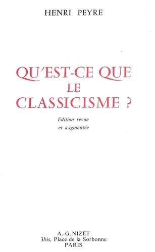 Seconde édition, revue et augmentée, de l'une des études majeures sur le classicisme français. Henri Peyre, analysant ce mouvement dans toutes ses dimensions (historiques, artistiques, sociales), en dégage les traits essentiels.