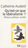 Est-ce un abus de langage que d'utiliser le même terme de " libéralisme " pour les idées de Locke et celles du New Deal, pour les thèses de John Rawis et l'expérience économique des théories de Milton Friedman que fit le Chili de Pinochet ? À la question " Qu'est-ce que le libéralisme ? " il n'est qu'une réponse pertinente : mettre en évidence le noyau constitutif d'idées et de valeurs qui donne sa cohérence au libéralisme, à travers la reconstitution de ses débats et de ses crises dans l'histoire. Cette théorie définit ce qu'est la société " bonne " ou " juste " : celle où chacun, tant qu'il ne nuit pas à autrui et n'attente aux intérêts vitaux de personne, est le meilleur juge, dans la liberté de sa conscience, de son bien et de ses intérêts, dont il peut être tenu pour responsable. Des origines à aujourd'hui, Catherine Audard tisse la toile des liens pour le moins contradictoires qu'ont entretenus cette théorie normative et la politique réelle. Où le lecteur découvrira alors les nombreuses limites, économiques, politiques et sociales, que l'éthique libérale a posées pour que chacun puisse être libre, sans oppression ni sujétion d'aucune sorte. Le libéralisme, en cela, n'est pas un système, mais une promesse.