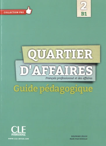 Guide pédagogique dans la collection Quartier d'affaires , méthode de français langue étrangère (FLE) dans le domaine du français sur objectif spécifique (FOS) pour grands adolescents et adultes, niveau B1. Quartier d'affaires , méthode de français professionnel et des affaires, s'adresse à des étudiants grands adolescents ou adultes ayant acquis le niveau A2 du Cadre européen de référence pour les langues (CECRL). Elle répond aux besoins des cours de français sur objectifs spécifiques (FOS) et aux objectifs de ceux qui souhaitent améliorer leur français en contexte professionnel ou de recherche d'emploi dans un environnement francophone. Communicative, actionnelle, claire et structurée, cette méthode aborde les aspects culturels francophones de manière globale et non stéréotypée. Quartier d'affaires couvre le niveau B1 du CECRL et permet d'enrichir et de compléter son profil professionnel. La vidéo de Quartier d'affaires B1 présente 5 scènes de la vie professionnelle tournées en décors authentiques. La matériel Quartier d'affaires B1 : Livre de l'étudiant avec DVD-Rom audio et vidéo inclus Cahier d'activités Guide pédagogique