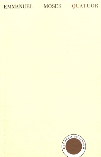 Par le titre qu'il a choisi, Emmanuel Moses place d'emblée son poème dans la lignée la plus exigeante, qu'il s'agisse du genre musical qui a donné à la musique de chambre ses plus hauts chefs d'oeuvre ou des Four Quartets, le recueil du poète anglais T. S. Eliot qui, déjà, se référait à la musique et à sa capacité d' "entretisser plusieurs thèmes qui, superficiellement, ne semblent pas liés" . Et de fait, comme ceux de son illsutre devancier, le Quatuor d'Emmanuel Moses est une sorte de méditation philosophique en quatre mouvements.