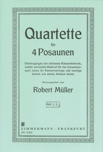 Transcriptions of the most beautiful choruses for male choir, etc. , offering valuable material for ensemble playing as well as for concert performances and other light or serious occasions Instrumentation : 4 trombones