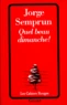 " Avais-je rêvé ma vie à Buchenwald ? Ou bien, tout au contraire, ma vie n'était-elle qu'un rêve depuis mon retour de Buchenwald ? ". Quel beau dimanche !, que Semprun tient pour son livre " essentiel ", sera cette vertigineuse recherche d'identité d'un double rescapé du nazisme et du stalinisme. Ici, l'ancien dirigeant du Parti communiste espagnol clandestin, en homme presque suspect à lui-même, cherche à dire, à comprendre quelle fut son histoire dans l'histoire du siècle. Inspiré, et même commandé par la lecture d'Une journée d'Ivan Denissovitch de Soljenitsyne, ce livre est aussi une réflexion irréductible sur la mort de la Révolution.