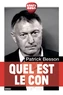 Sniper des lettres à la dent tendre, il n'est jamais là où on l'attend. En témoignent les volumineux catalogues de ses chroniques et inventaires d'aphorismes. Une manière d'anthologie arbitraire de notre époque. Le roman vrai de ce que nous vivons sans, parfois, le savoir, ces détails faits ou traits de caractère qui nous échappent. "Quel est le con..." s'amuse de beaucoup de gens dans l'espoir absurde de les faire rire d'eux-mêmes. Il s'agit aussi du plaisir de vivre quand on a gardé sa liberté de ton. Mais, au fait, quel est le con ? Sûrement pas lui.