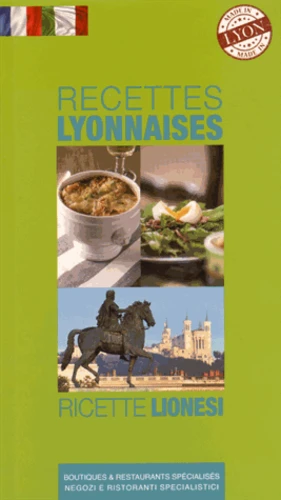 Guide de recettes de spécialités lyonnaises bilingue (Français - Italien). Le livre est composé, face à face, de la recette en Français et de la recette en Italien. Sous la recette : les restaurants spécialisés dans ce plat Lyonnais (sélection) et les marchands où trouver les ingrédients pour réaliser ces plats (sélection).