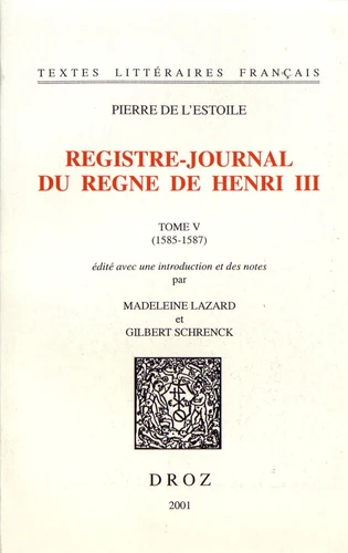 Cinquième tome du Journal de Pierre de L'Estoile, qui constitue, de l'avis général, le document le plus important et le plus curieux pour la connaissance historique et littéraire de la fin du XVIe siècle en France. Pour la première fois, ce texte est édité d'après le manuscrit original fr. 6678 et les variantes du manuscrit fr. 6888 de la Bibliothèque nationale de France. "Nous voici enfin arrivés à l'an 1585.