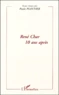 Le 19 février 1988 René Char disparaissait. Maître incontesté de la poésie moderne, il avait pu voir son œuvre pénétrer dans tous les milieux. Sa méditation sur la peinture, ses prises de positions en faveur de ce que l'on nomme aujourd'hui l'écologie au moment de l'installation des fusées sur le plateau d'Albion, sa volonté de nouer en une seule et même parole poésie et éthique le proposaient comme un repère. Qu'en est-il dix ans après ? Une nouvelle orientation poétique se dessine, des voix s'élèvent, partagées entre admiration et refus, des zones d'ombres apparaissent autour d'une stature jugée par certains trop écrasante. Le colloque de Montpellier a tenté de faire le point et de commencer à mettre en perspective une œuvre incontournable dans le devenir de la littérature.