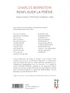 Dans "Renflouer la poésie", livre qui regroupe des textes écrits ce dernier quart de siècle, Charles Bernstein en fait voir aux poèmes (et aux lecteurs) de toutes les couleurs et de toutes les formes. On connaît la formule célèbre de Rimbaud "je est un autre" : ici, je et la poésie par-dessus le marché sont toujours "autrement dit". Des vers et des pas mûrs : les poèmes de Charles Bernstein passent par tous les états possibles imaginables souffrant d'une incurable bougeotte, ils vont toujours voir là-bas s'ils y sont et s'ils y trouvent leur lecteur.