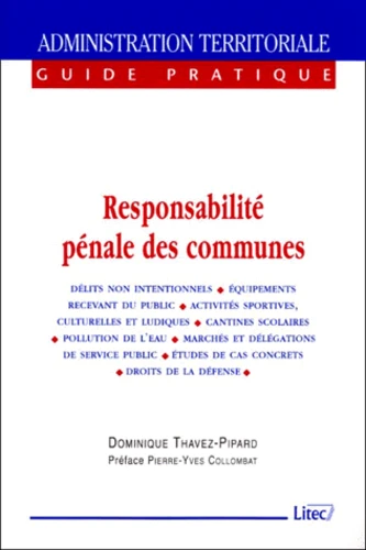 Responsabilité pénale des communes. Délits non intentionnels, équipements recevant du public, activités sportives, culturelles et ludiques, cantines scolaires, pollution de l'eau, marchés et délégations...
