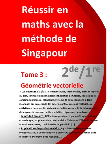 Pourquoi apprendre les mathématiques en utilisant la méthode de Singapour ? Simplement parce que les élèves de ce pays sont les meilleurs du monde en mathématiques. La méthode de Singapour est une méthode d'enseignement des mathématiques conforme aux directives du Ministère de l'Education de Singapour. Elle est surtout connue pour être appliquée aux élèves du primaire. Sa philosophie, "du simple au complexe", peut être utilement étendue aux élèves du collège et du lycée.