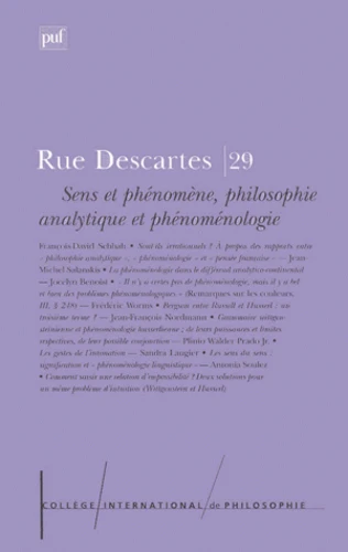 Rue Descartes N° 29 Septembre 2000 : Sens et phénomène, philosophie analytique et phénoménologie