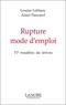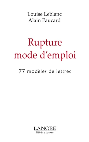 Deux écrivains, l'un parisien, l'autre québécois, proposent aux hommes et aux femmes des moyens de s'en sortir, de quitter la lice, en encourageant la parole écrite, au détriment des textos, SMS et autres courriers électroniques. Utiliser le langage écrit respecte, voire honore, ceux que l'on quitte. En 77 lettres de rupture, proposées chacune alternativement, les deux auteurs recréent un univers, fait de malentendus, de situations équivoques, de faux départs et donc d'arrivées incertaines.