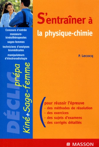 S'ENTRAINER A LA PHYSIQUE-CHIMIE.. Concours d'entrée masseurs-kinésithérapeutes, sages-femmes, techniciens d'analyses biomédicales, manipulateurs d'électroradiologie